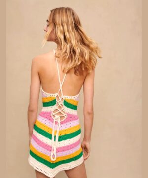 Cotton Multicolored Knit Dress in Multi-Coloured
